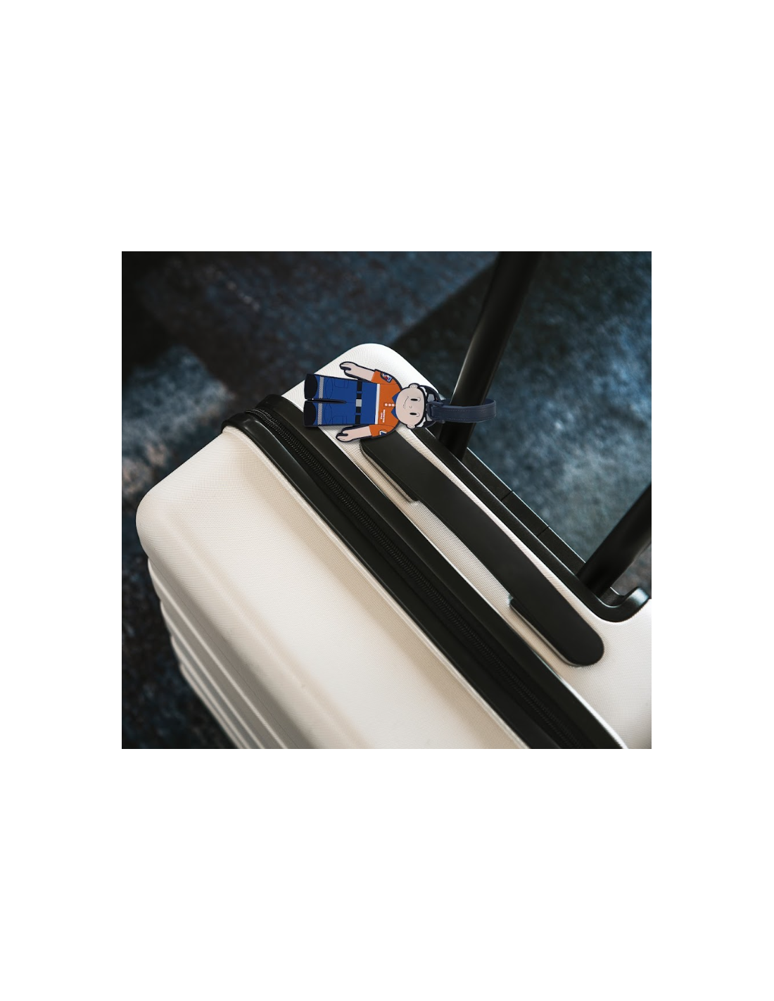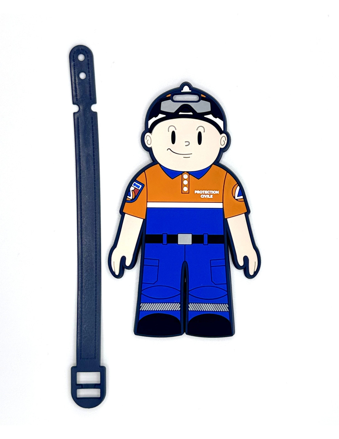 Étiquette porte-bagage avec mascotte de la Protection Civile.